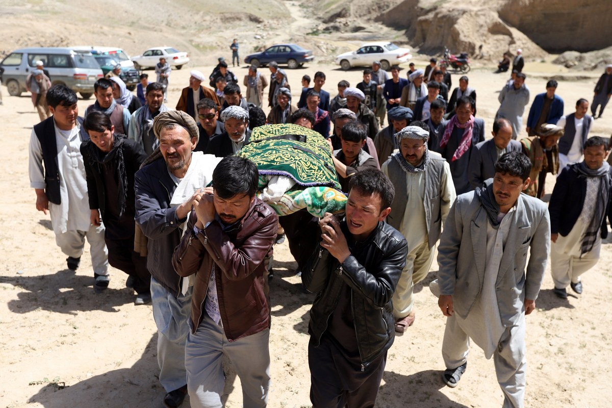 epa06686654 People attend the funeral of one of the victims a day after a suicide bomb attack at a voter registration center in Kabul, Afghanistan, 23 April 2018. At least 57 people were killed and 119 injured on 22 April, in a suicide attack on a voter registration center in western Kabul, government sources said. EPA/JAWAD JALALI
