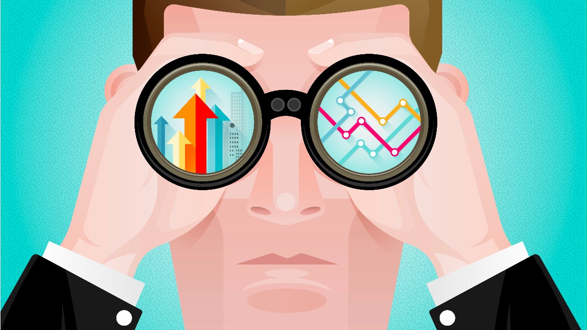 Business Vision concept Businessman looking to the view with telescope. Looking to the future