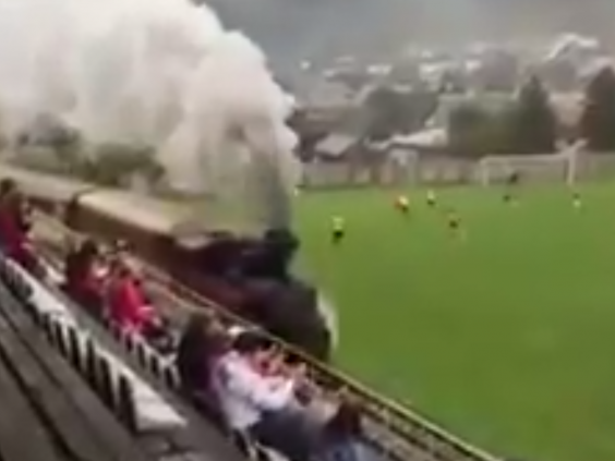 Σιδηροδρομικές ράγες διασχίζουν το γήπεδο, συγκεκριμένα βρίσκονται ανάμεσα στο τερέν και στις κερκίδες, και τα τρένα κάνουν κανονικά τα δρομολόγια τους ακόμη και την ώρα που διεξάγεται ένας αγώνας.