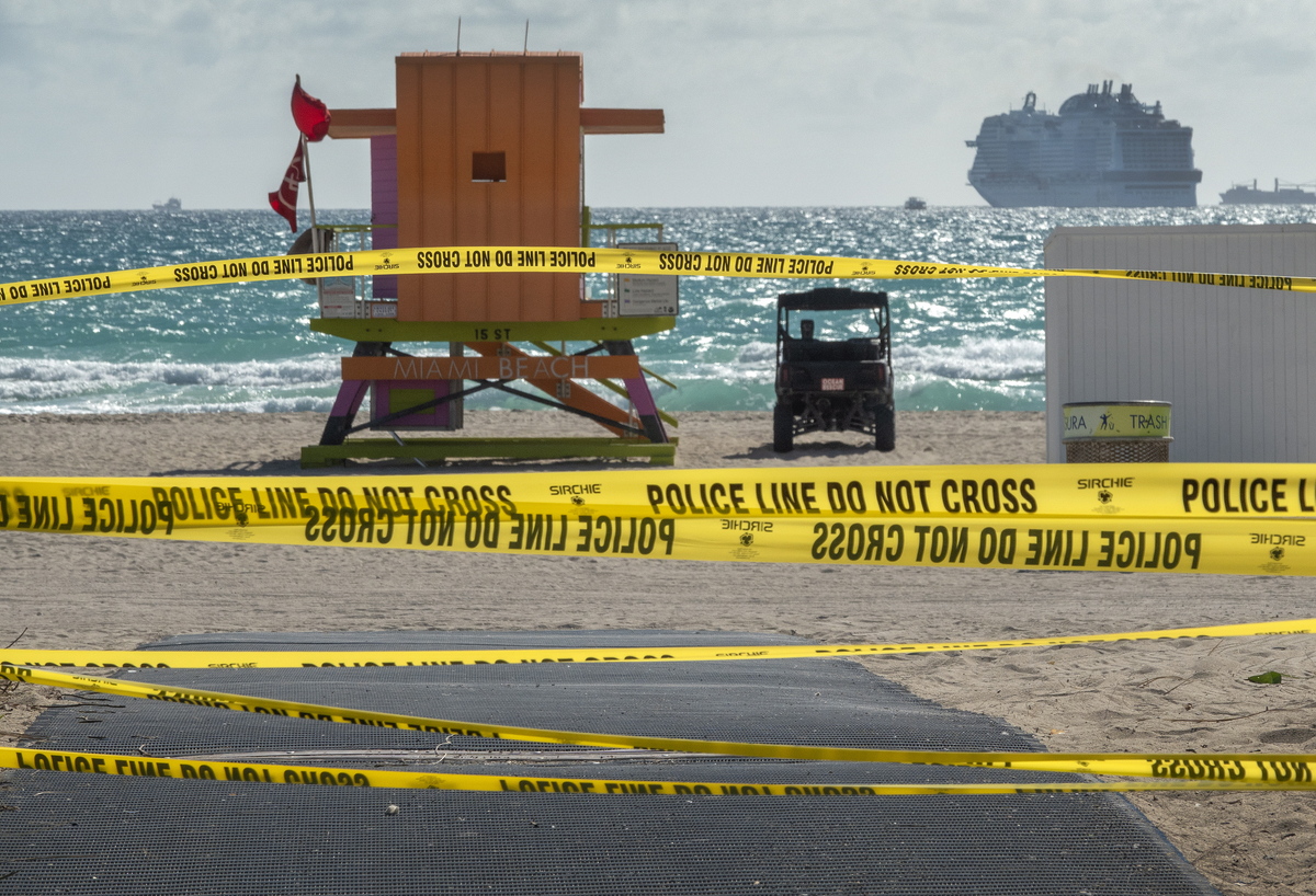 epaselect epa08307412 The closed beach entrance is seen in South Beach, Florida, USA, 19 March 2020. On 15 March, Miami Beach Mayor Dan Gelber implemented new restrictions meant to curb the spread of coronavirus. EPA/CRISTOBAL HERRERA