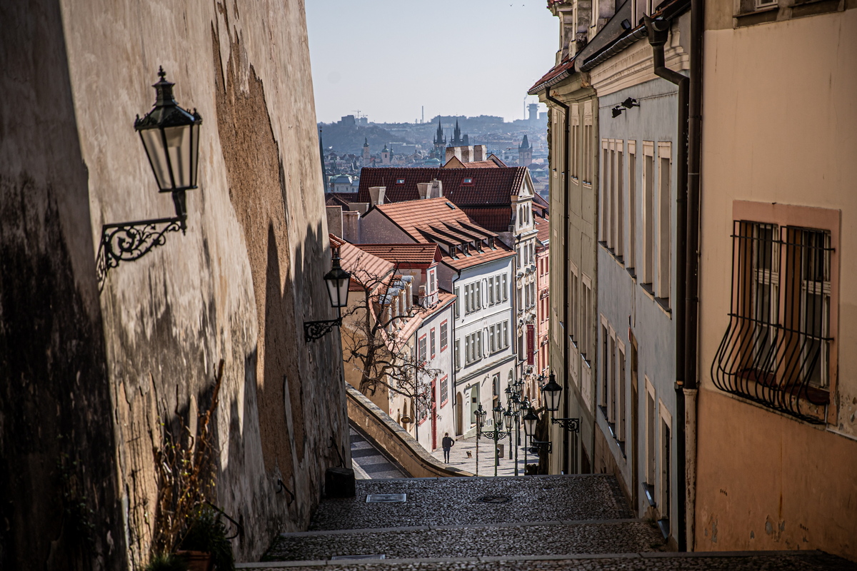epa08321437 A woman walks through empty street in Prague, Czech Republic, 25 March 2020. The Czech government has imposed a lockdown imposed in an attempt to slow down the spread of the pandemic COVID-19 disease caused by the SARS-CoV-2 coronavirus. There are currently almost 1500 confirmed cases of Covid-19 in the country with five deaths reported. EPA/MARTIN DIVISEK