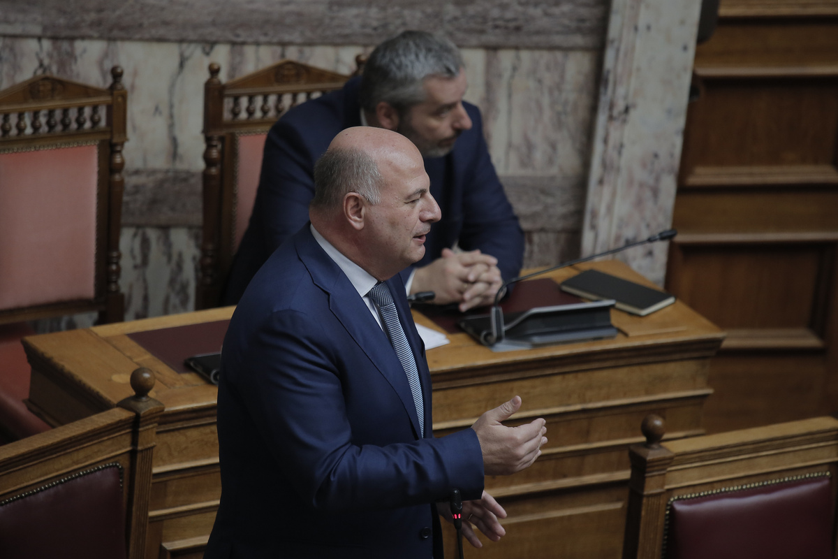 O υπουργός δικαιοσύνης Κώστας Τσιάρας μιλά κατά τη διάρκεια της μόνης συζήτησης και ψήφισης επί της αρχής, των άρθρων και του συνόλου του σχεδίου νόμου: «Κύρωση της από 30.3.2020 Π.Ν.Π. "Μέτρα αντιμετώπισης της πανδημίας του κορονοϊού COVID-19, Αθήνα Παρασκευή 24 Απριλίου 2020. ΑΠΕ-ΜΠΕ/ΑΠΕ-ΜΠΕ/ΚΩΣΤΑΣ ΤΣΙΡΩΝΗΣ
