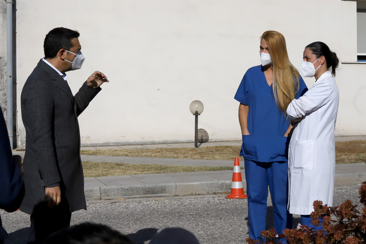 Ο πρόεδρος του ΣΥΡΙΖΑ-Προοδευτική Συμμαχία, Αλέξης Τσίπρας (Α) επισκέφτηκε το Γενικό Νοσοκομείο Δράμας, Παρασκευή 27 Νοεμβρίου 2020. ΑΠΕ-ΜΠΕ/ΑΠΕ-ΜΠΕ/ΠΑΥΛΟΣ ΣΙΔΗΡΟΠΟΥΛΟΣ