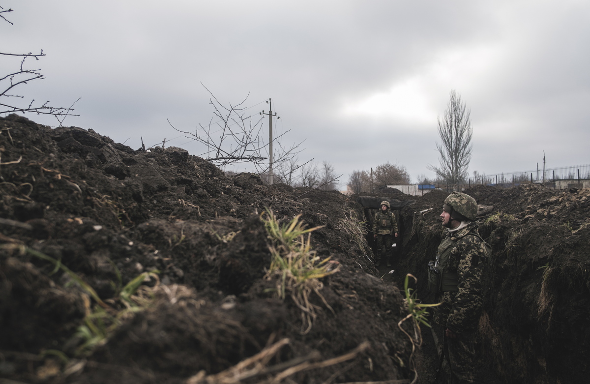 epa10384139 Ukrainian servicemen on their position near the city of Bakhmut in the Donetsk area, Ukraine, 31 December 2022 prior to the New Year celebration. Heavy fighting took place in the area during a Russian offensive in November 2022. Bakhmut is still without heating, electricity, and gas due to permanent shelling. Russian troops entered Ukraine on 24 February 2022 starting a conflict that has provoked destruction and a humanitarian crisis. EPA/GEORGE IVANCHENKO