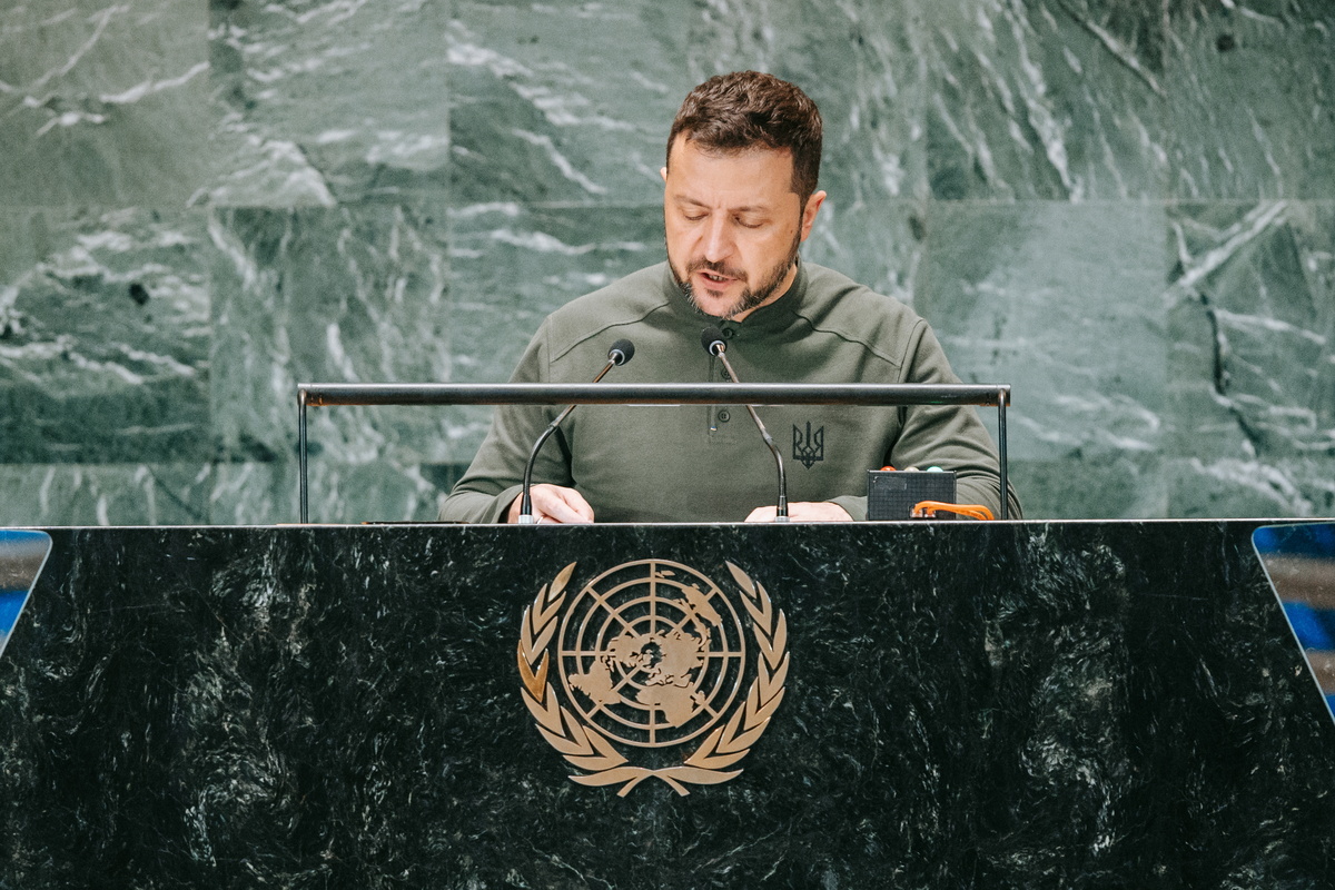 Χθες Τρίτη, ο Ζελένσκι δήλωσε ενώπιον του Συμβουλίου Ασφαλείας των Ηνωμένων Εθνών ότι ο πόλεμος με τη Ρωσία δεν μπορεί να τερματιστεί μόνο μέσω συνομιλιών και ότι η Μόσχα πρέπει να εξαναγκαστεί σε ειρηνευτική συμφωνία.
