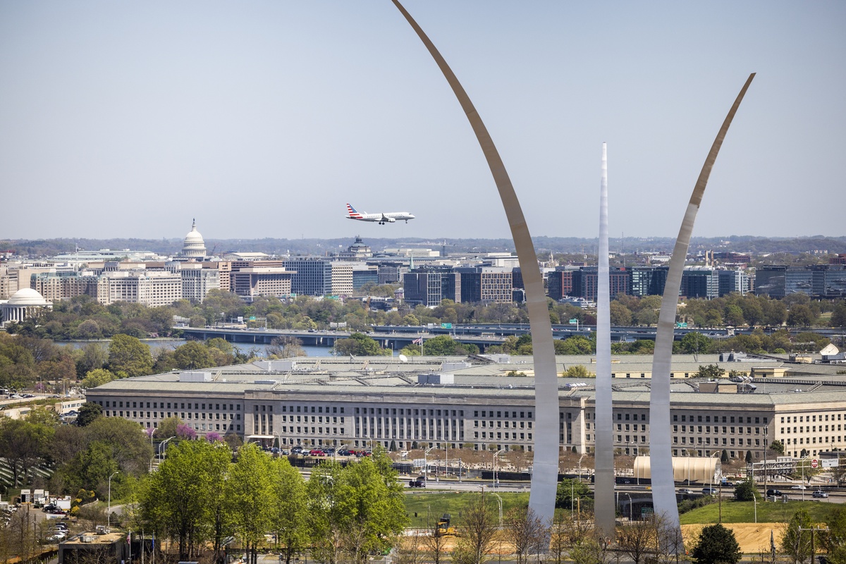 epa10567797 The Pentagon behind the United States Air Force Memorial in Arlington, Virginia, USA, 10 April 2023. Classified military documents that were leaked online ‘pose a very serious risk to national security’ according to Pentagon officials. They include documents detailing the US assessment of the war in Ukraine. EPA/JIM LO SCALZO