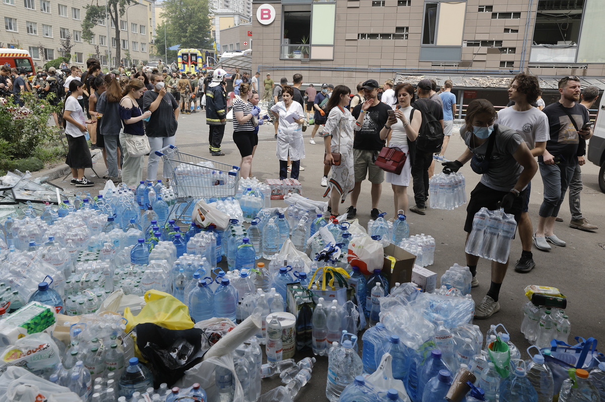 Έξω από το παιδιατρικό νοσοκομείο του Κιέβου που επλήγη νωρίτερα σήμερα από τη Ρωσία, μια ανθρώπινη αλυσίδα από εκατοντάδες ανθρώπους σχηματίστηκε αυθόρμητα, για να βοηθήσει τα σωστικά συνεργεία να απομακρύνουν τα χαλάσματα και να εντοπίσουν τυχόν επιζώντες.
