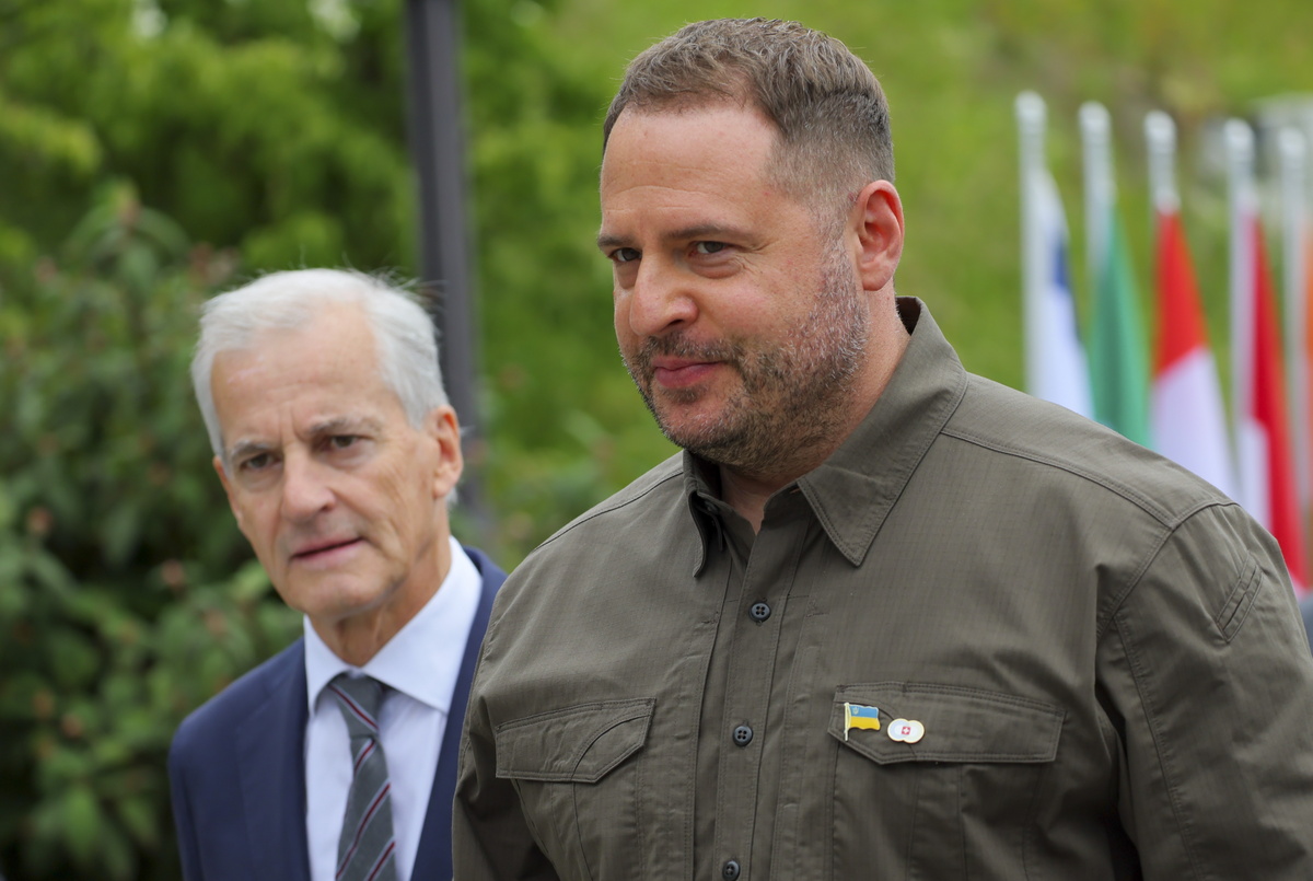 epa11412549 Head of the Office of the President of Ukraine Andriy Yermak (R) arrives for the opening ceremony of the Summit on Peace in Ukraine at the Buergenstock Resort in Stansstad, near Lucerne, Switzerland, 15 June 2024. International heads of state gather on 15 and 16 June at the Buergenstock Resort in central Switzerland for the two-day Summit on Peace in Ukraine. EPA/Denis Balibouse / POOL EDITORIAL USE ONLY EDITORIAL USE ONLY