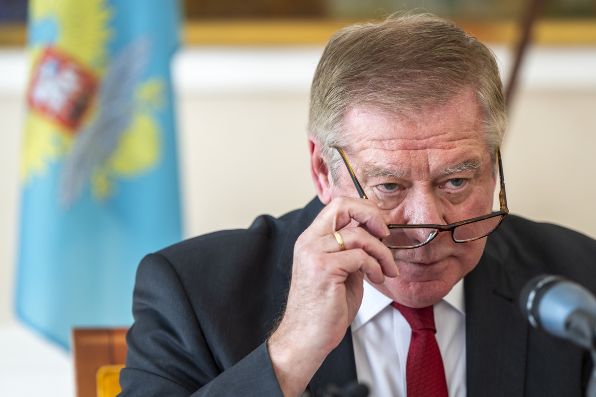 epa11720523 Permanent Representative of the Russian Federation to the United Nations Office, Ambassador Gennady Gatilov addresses journalists at a press conference held by the Geneva Association of United Nations Correspondents (ACANU) at the Permanent Mission of the Russian Federation to the United Nations in Geneva, Switzerland, 14 November 2024. EPA/MARTIAL TREZZINI