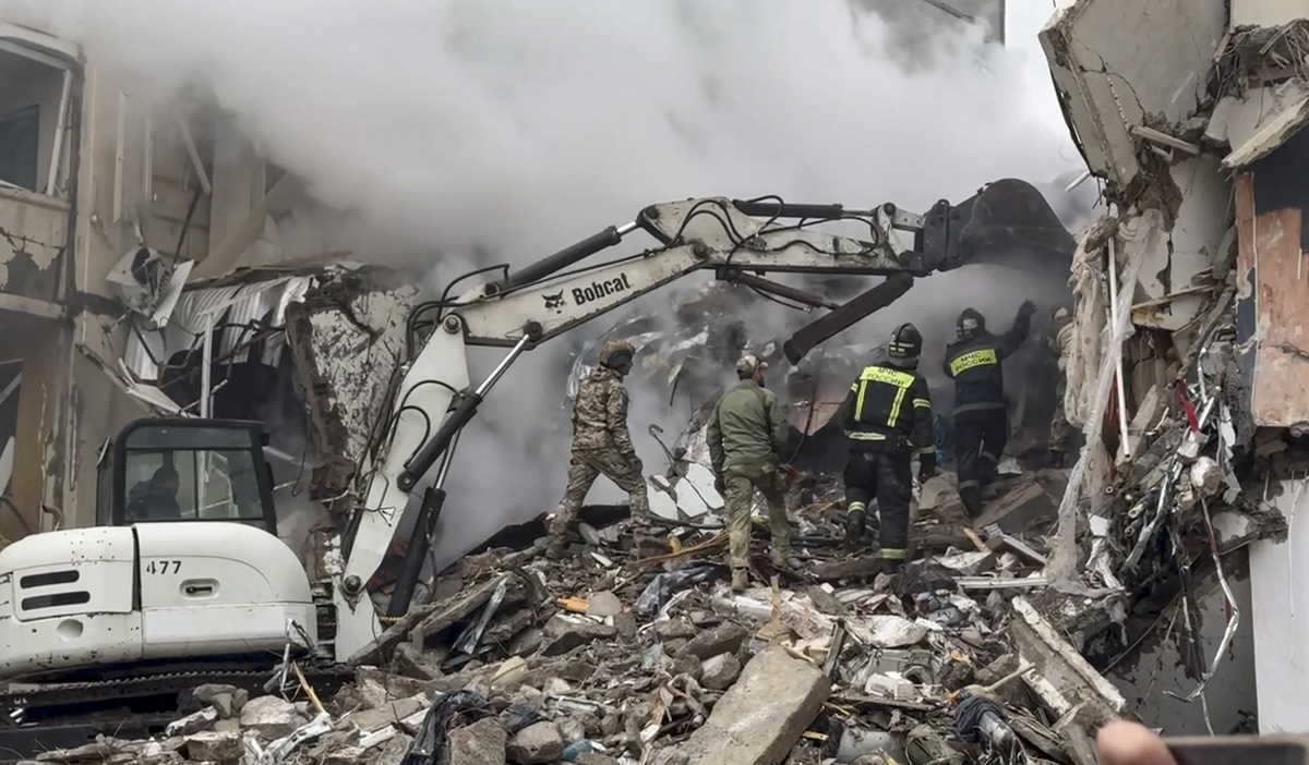 epa11336003 A handout photo made available on the telegram channel of Russia's Governor of Belgorod region, Vyacheslav Gladkov shows Russian rescuers removing debris at the site of a damaged residential building following shelling in Belgorod, Russia, 12 May 2024. According to the Russian Defense Ministry, Belgorod came under an attack from the Ukrainian side, adding that air defense systems downed six missiles and six rockets, and an apartment building in Russia's Belgorod was damaged by fragments of a downed Ukrainian Tochka-U missile. On 24 February 2022, Russian troops entered Ukrainian territory in what the Russian president declared a 'special military operation', starting an armed conflict that has provoked destruction and a humanitarian crisis. EPA/BELGOROD GOVERNOR VYACHESLAV GLADKOV TELEGRAMM CHANNEL HANDOUT -- MANDATORY CREDIT -- HANDOUT EDITORIAL USE ONLY/NO SALES HANDOUT EDITORIAL USE ONLY/NO SALES