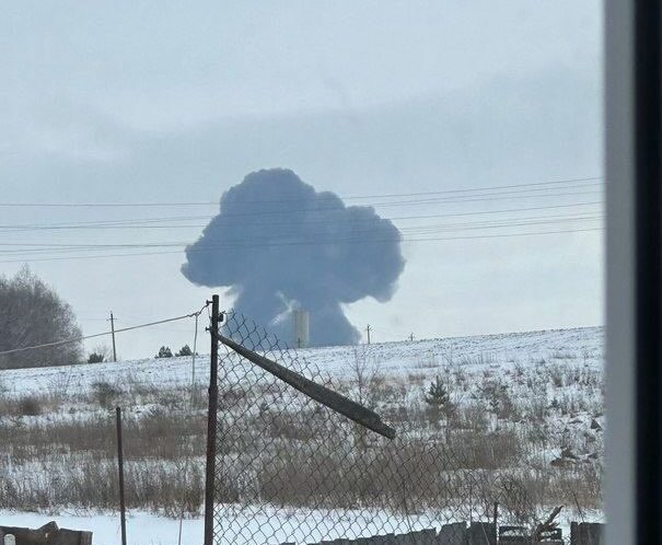 Βίντεο που αναρτήθηκε στο Telegram από το Baza, ένα κανάλι που συνδέεται με τις υπηρεσίες ασφαλείας της Ρωσίας, δείχνει ένα μεγάλο αεροσκάφος να πέφτει και να εκρήγνυται σε μια μεγάλη μπάλα φωτιάς.