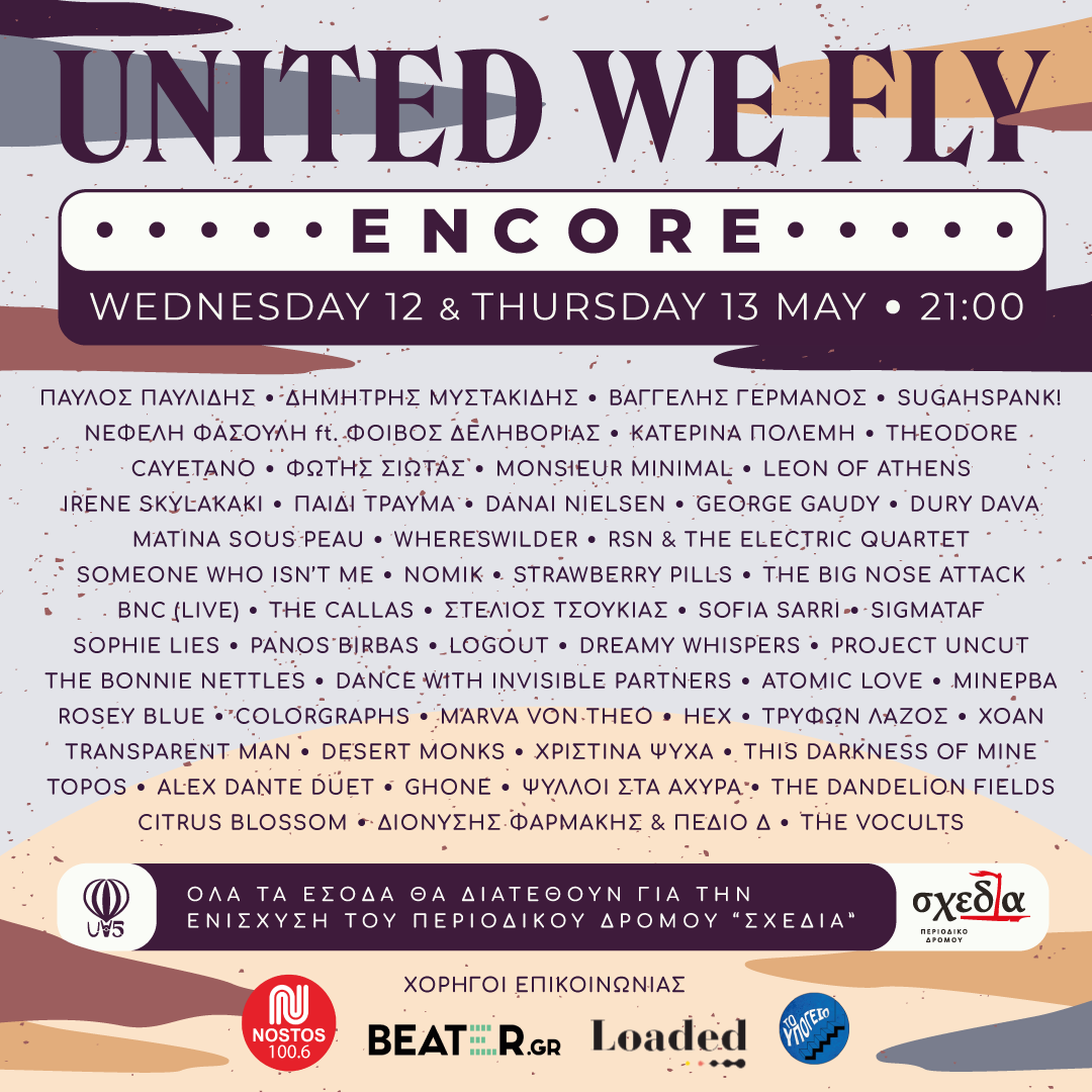 Ένα χρόνο μετά την διοργάνωση του πρώτου online μουσικού φεστιβάλ στην Ελλάδα “Stay Home Sessions” το οποίο ολοκληρώθηκε με ένα streaming concert 20 καλλιτεχνών, ως ένδειξη αλληλεγγύης στο πολύ σημαντικό έργο της “Σχεδίας” & διαθέτοντας το σύνολο των εθελοντικών συνεισφορών, η United We Fly επιστρέφει το Μάιο του 2021 για το ENCORE.