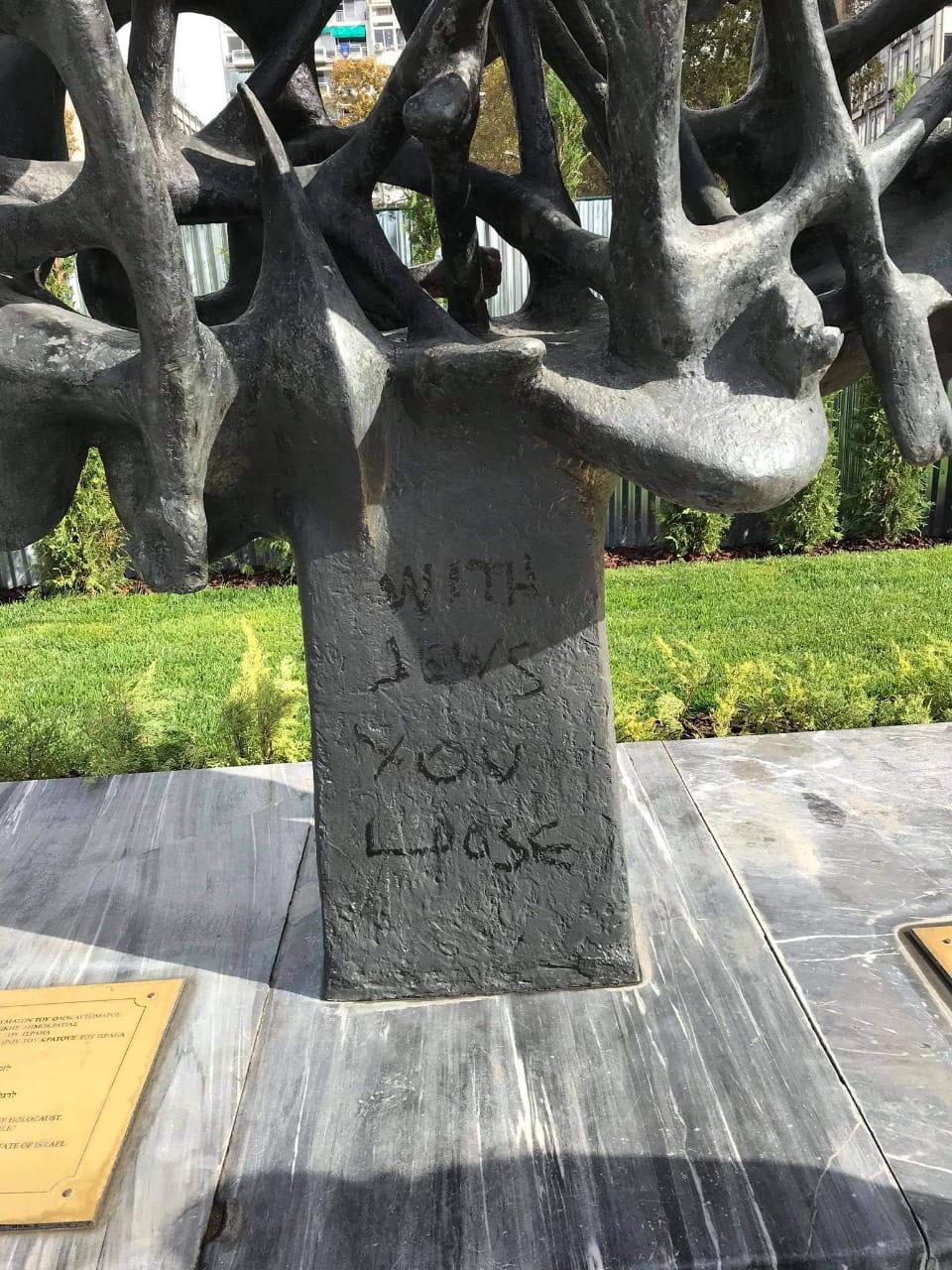 Τον αποτροπιασμό της για τον βανδαλισμό του Μνημείου Ολοκαυτώματος, που έγινε από αγνώστους την Παρασκευή 16 Οκτωβρίου 2020, εκφράζει με σημερινή της ανακοίνωση η Ισραηλιτική Κοινότητα Θεσσαλόνίκης (ΙΚΘ).