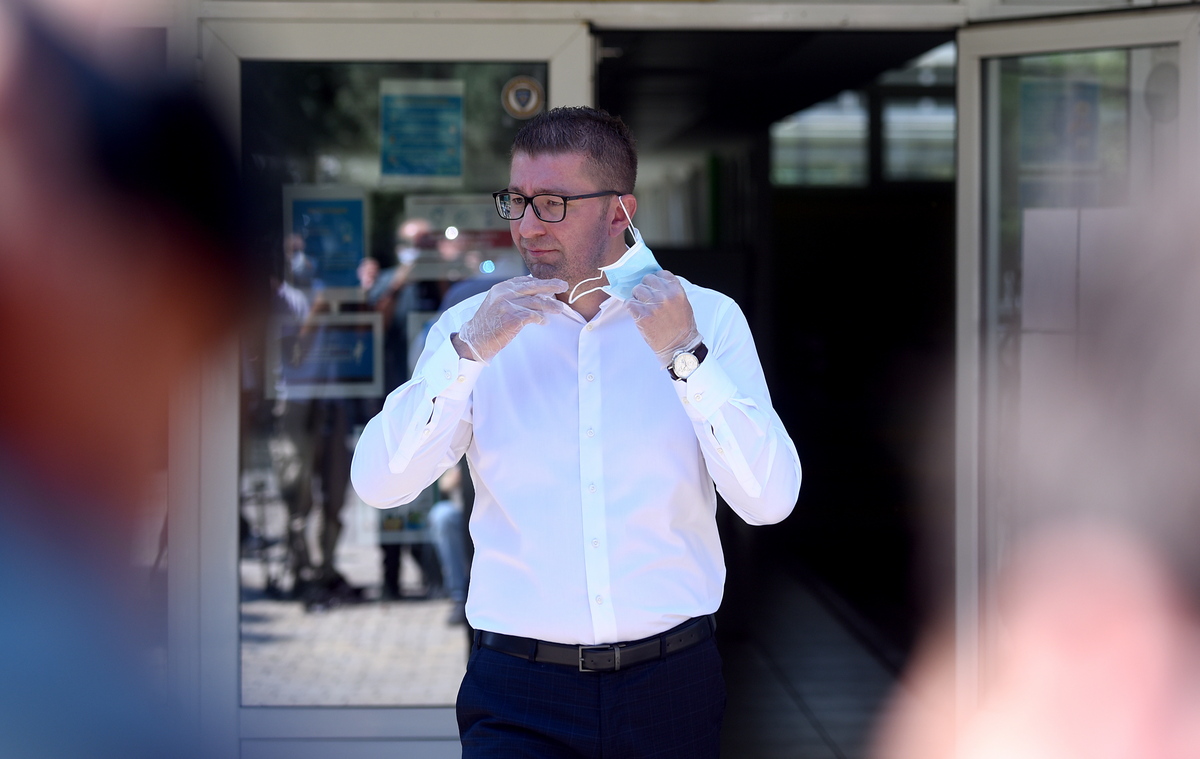 epa08546942 A leader of the biggest opposition party VMRO-DPMNE Hristijan Mickoski leaves a polling station after voting during parliamentary elections in Skopje, North Macedonia, 15 July 2020 Almost two million Macedonians vote in a early Parliamentary elections three months after they were postponed due to the coronavirus pandemic. EPA/NAKE BATEV