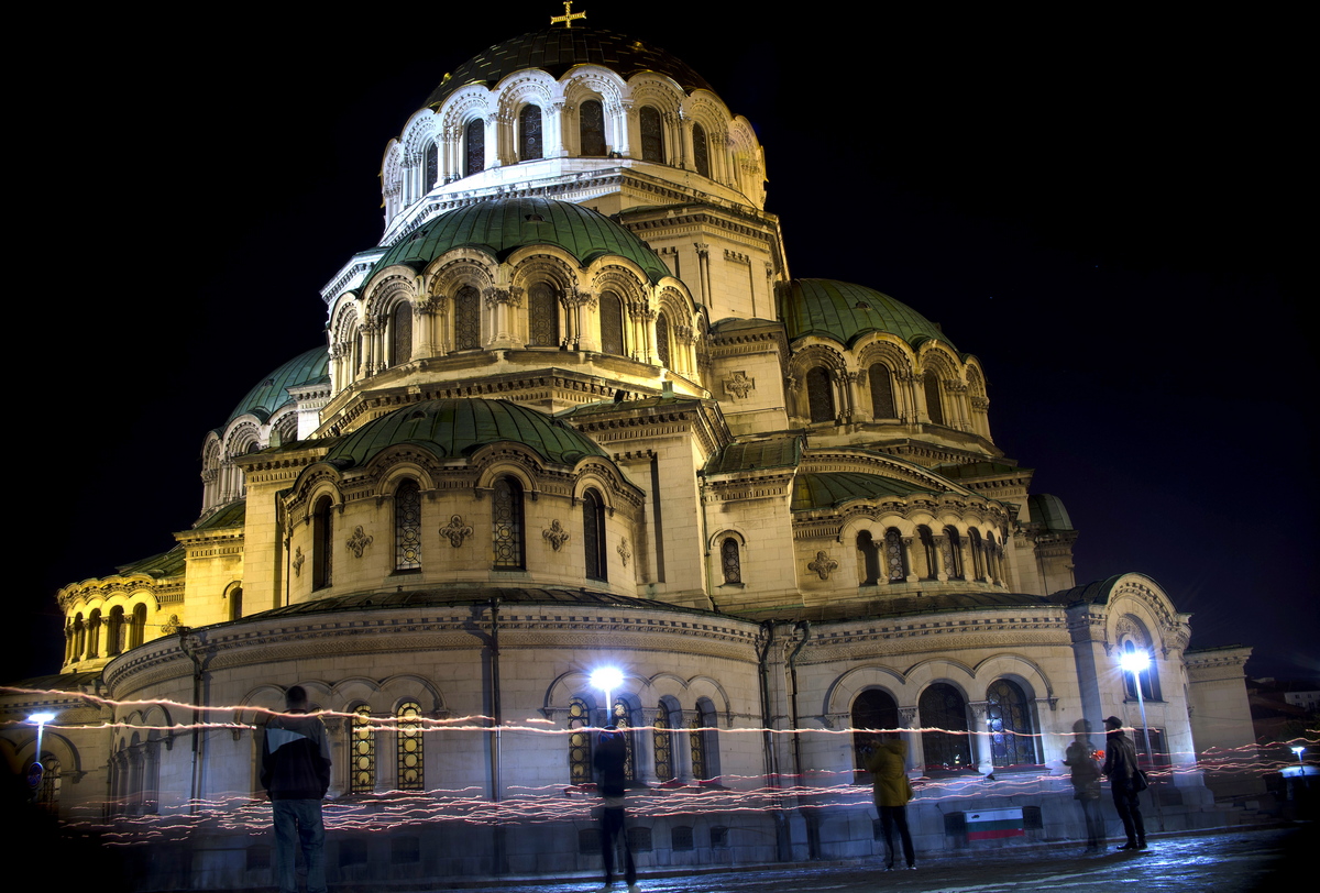 epa07533127 A photograph taken with a slow exposure shows Bulgarians walking with candles around the golden-domed Alexander Nevski cathedral after an Easter service in Sofia, Bulgaria, early 28 April 2019. Orthodox Christian believers mark the Holy Week of Easter in celebration of the crucifixion and resurrection of Jesus Christ. The Eastern Orthodox world celebrates Easter Day according to the old Julian calendar. EPA/Borislav Troshev