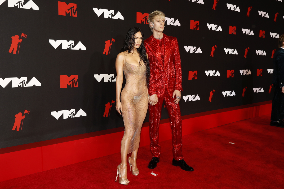 Ο φίλος της Machine Gun Kelly εμφανίστηκε με κόκκινο κοστούμι, ενώ όπως είχε προβλέψει η Megan με ανάρτησή της στο Instagram ήταν στους νικητές των βραβείων.