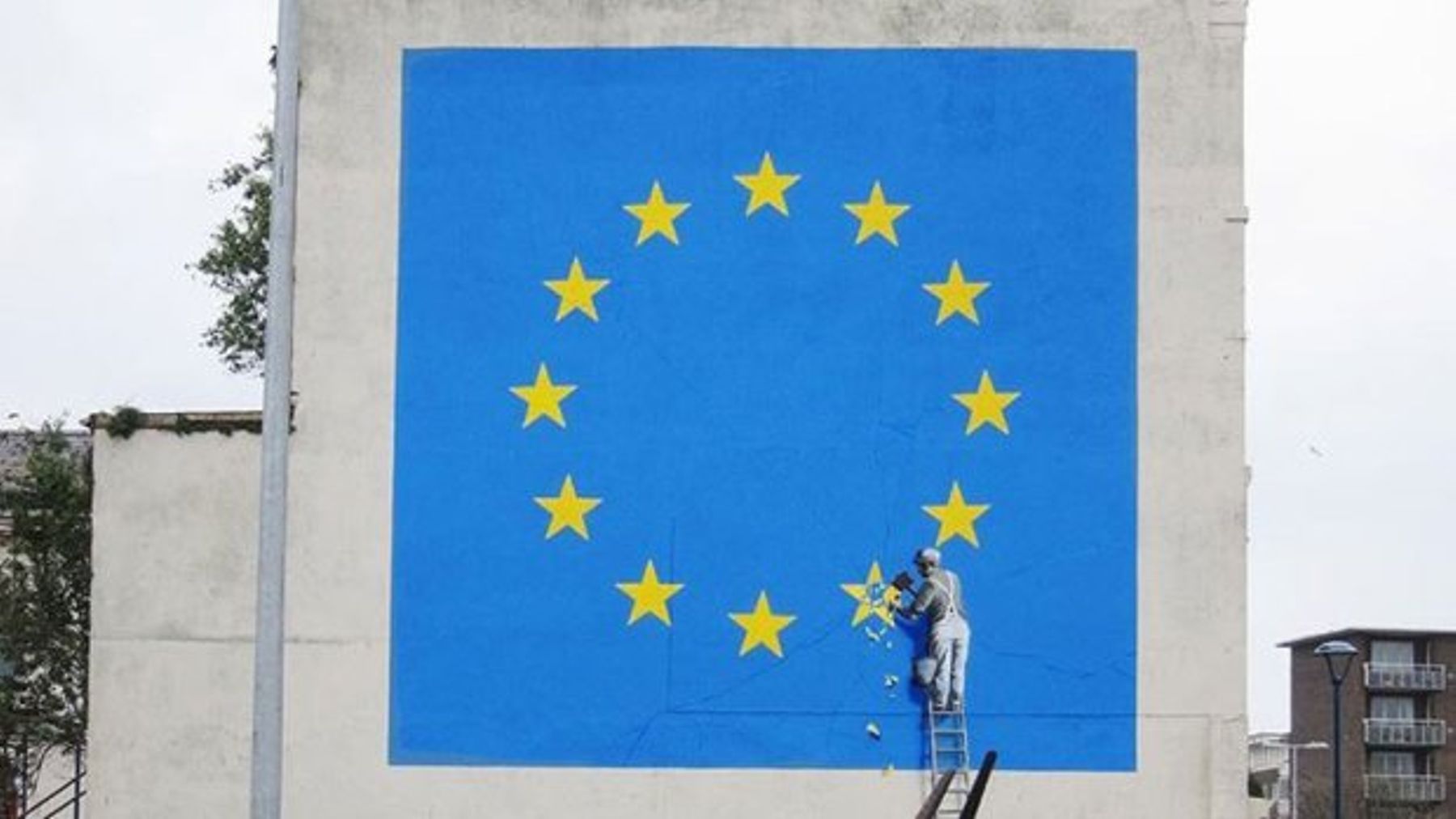Το γνωστό έργο του Banksy που συμβολίζει το Brexit και απεικονίζει έναν εργάτη να αποξηλώνει ένα αστέρι από την σημαία της Ευρωπαϊκής Ενωσης εξαφανίσθηκε από τον τοίχο του κτιρίου όπου βρισκόταν από το 2017 στο Ντόβερ.