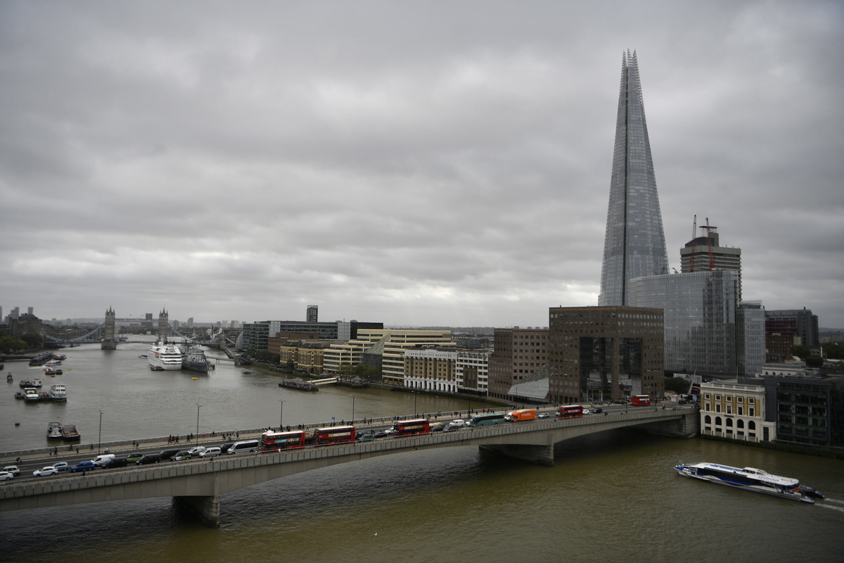 epa07034552 A general view of traffic crossing the river Thames over London Bridge in the City of London, Britain, 20 September 2018, with London's tallest building, the Shard, towering above the other properties on the city skyline. EPA/NEIL HALL