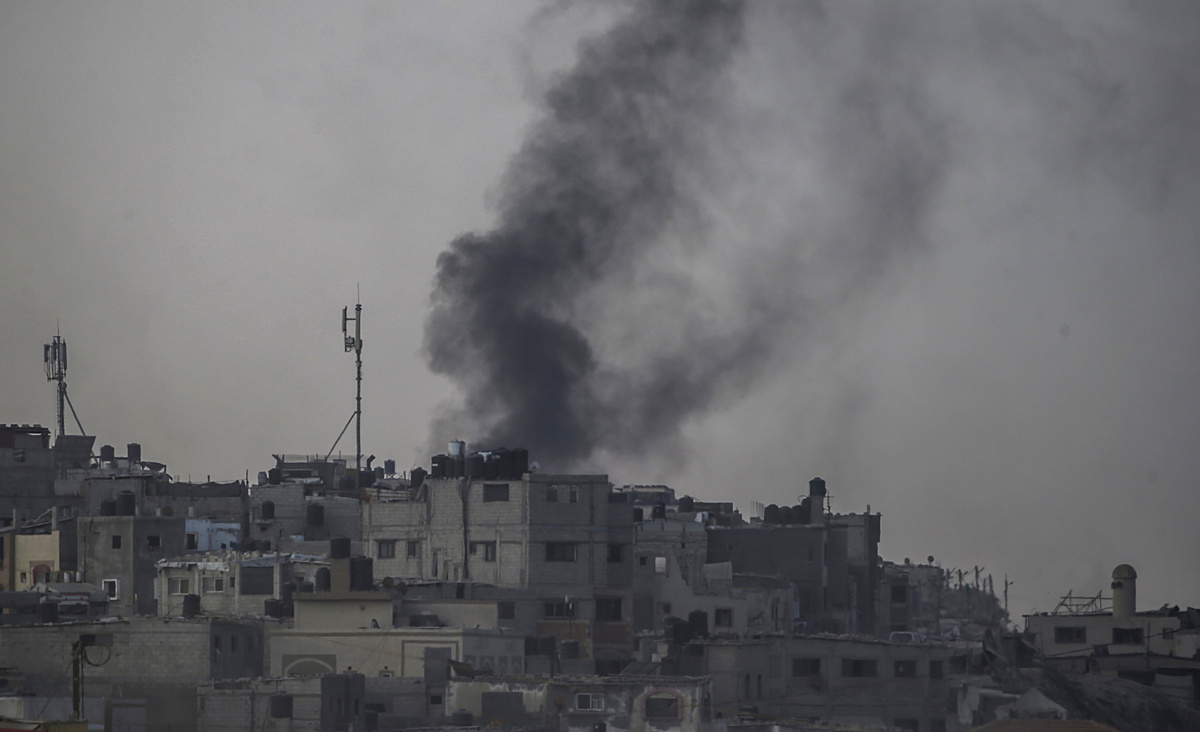 epa11569358 Smoke rises following an Israeli air strike during a military operation in Deir Al Balah, central Gaza Strip, 28 August 2024. More than 40,000 Palestinians and over 1,400 Israelis have been killed, according to the Palestinian Health Ministry and the Israel Defense Forces (IDF), since Hamas militants launched an attack against Israel from the Gaza Strip on 07 October 2023, and the Israeli operations in Gaza and the West Bank which followed it. EPA/MOHAMMED SABER