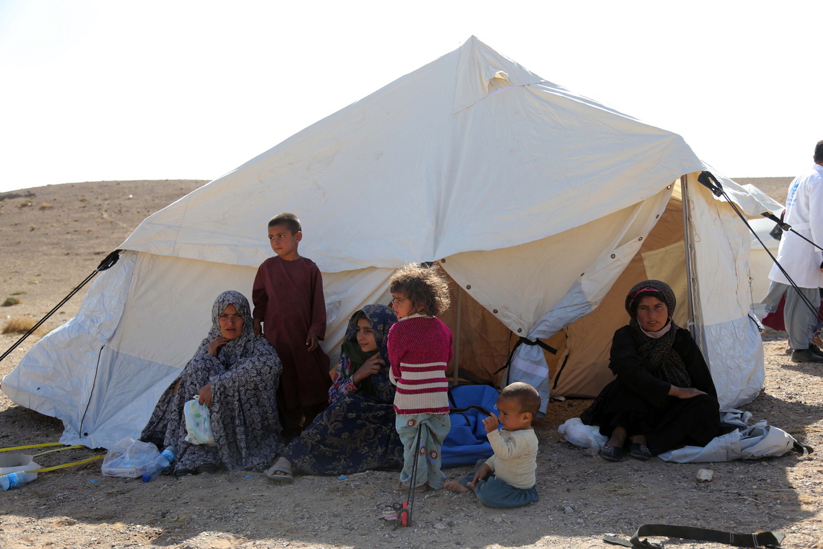 epa10911978 People affected by the earthquake wait for relief in earthquake-hit Zinda Jan district of Herat, Afghanistan, 10 October 2023. A 6.3-magnitude earthquake and the consecutive aftershocks that struck western Afghanistan during the weekend killed nearly 3,000, according to estimates by the government and nonprofit organizations. Over 2,000 people were wounded and 20 villages completely destroyed in the tremors. EPA/SAMIULLAH POPAL