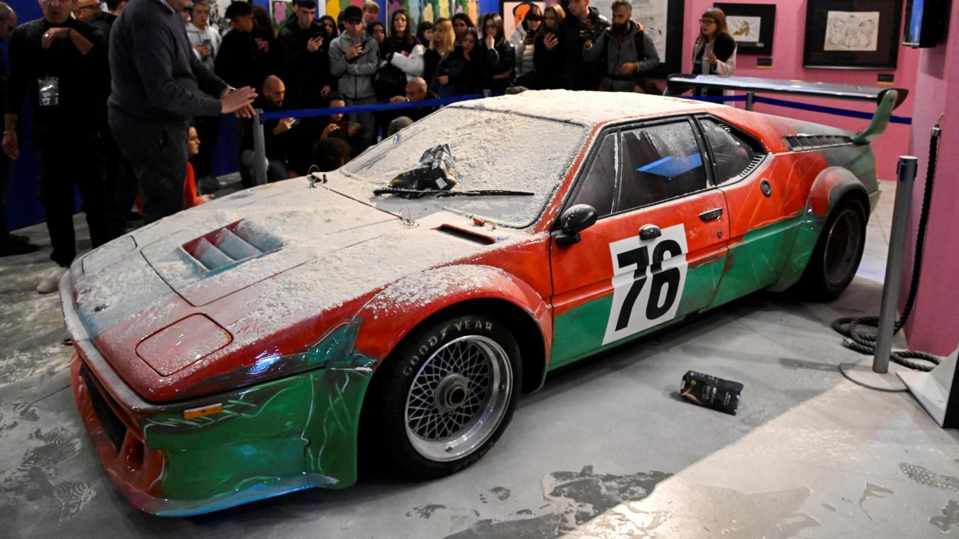 Το BMW Art Car έμοιαζε σαν να έχει καλυφθεί από ένα λεπτό στρώμα χιονιού μετά τη σημερινή επίθεση.