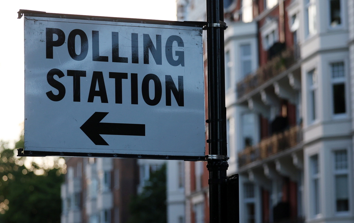 epa11453910 A polling station sign in London, Britain, 02 July 2024. The UK is set to hold a general election 04 July. EPA/ANDY RAIN