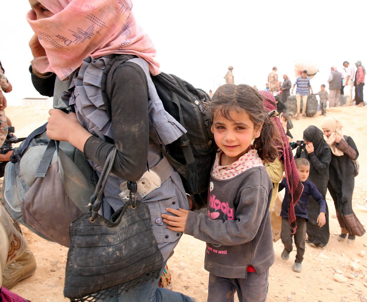 epa05289824 A girl look as Syrian refugees arrive to a camp on the Jordanian side at the north east of Jordan border with Syria, Al-Hadalat crossing point near Royashed Town, Jordan, 04 May 2016. according to the Jordanian Commander of the Borders Guards Brigadier Saber Al-Mahayreh, around 5000 Syrians fleeing from the recent attacks on the Syrian city of Aleppo crossed into Jordan in search of safety, most are exhausted and desperately in need of help and medical treatment. EPA/JAMAL NASRALLAH