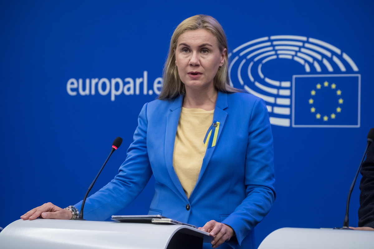 epa10183519 European Commissioner for Energy Kadri Simson addresses a press conference on energy high prices, at the European Parliament in Strasbourg, France, 14 September 2022. The press conference was held following the State of the Union address during which the European Commission proposed an emergency market intervention to tackle the dramatic price rises mainly caused by a severe mismatch between energy demand and supply, largely due to Russia’s reaction to international sanctions. EPA/CHRISTOPHE PETIT TESSON