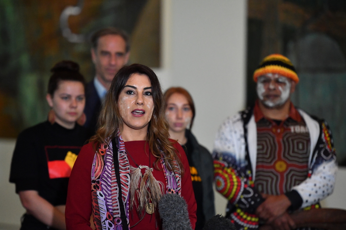 epa08724322 Incoming Greens senator Lidia Thorpe at a press conference at Parliament House in Canberra, Australia, 06 October 2020. Lidia Thorpe is replacing former Australian Greens Senator Di Natale and the first Aboriginal to represent Victoria. EPA/MICK TSIKAS NO ARCHIVING AUSTRALIA AND NEW ZEALAND OUT