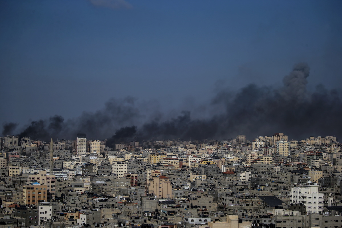 epa10915048 Smoke rises from the Gaza port following an Israeli air strike, in Gaza City, 12 October 2023. More than 1,400 Palestinians have been killed and over 6,000 others injured, according to the Palestinian Ministry of Health, after Israel started bombing the Palestinian enclave in response to attacks carried out by the Islamist movement Hamas on Israel from the Gaza Strip on 07 October. More than 4,000 people, including 1,500 militants from Hamas, have been killed and thousands injured in Gaza and Israel since 07 October, according to Israeli military sources and Palestinian officials. EPA/MOHAMMED SABER