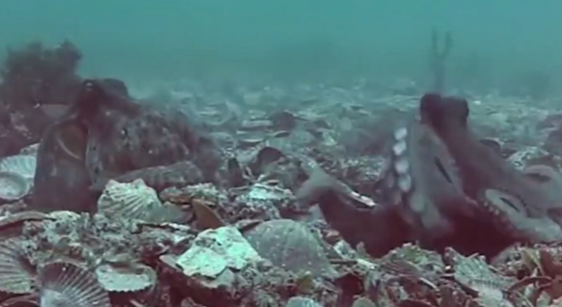 Χταπόδια «συνελήφθησαν» να πετούν το ένα στο άλλο αντικείμενα [ΒΙΝΤΕΟ]