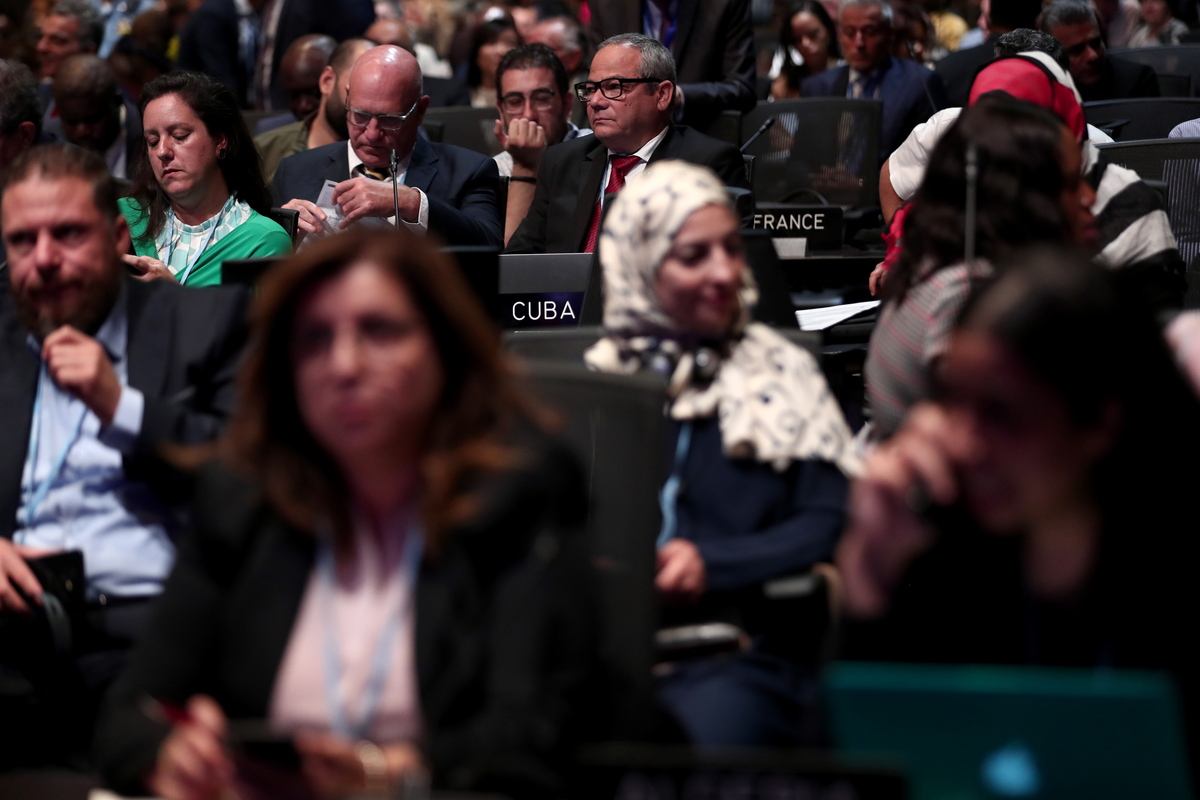 epa10289896 Delegations attend the 2022 United Nations Climate Change Conference (COP27), in Sharm El-Sheikh, in Egypt, 06 November 2022. The 2022 United Nations Climate Change Conference (COP27), running from 06 till 18 November in Sharm El-Sheikh, is expected to host one of the largest number of participants in the annual global climate conference of over 40,000 estimated attendees including heads of states and governments, civil society, media and other relevant stakeholders. The events will include Climate Implementation Summit, thematic days, flagship initiatives, and Green Zone activities engaging with climate and other global challenges. EPA/SEDAT SUNA