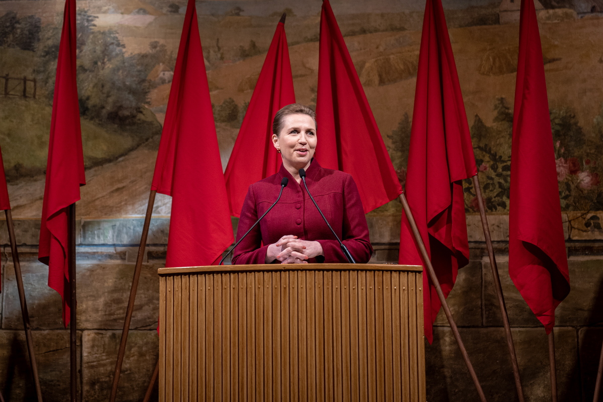 epa10602044 Denmark's Prime Minister and leader of the Social Democrats, Mette Frederiksen delivers a speech on International Workers' Day at the Arbejdermuseet (Workers Museum) in Copenhagen, Denmark, 01 May 2023. Labor Day, or May Day, is observed all over the world on the first day of May to celebrate the economic and social achievements of workers and fight for laborers rights. EPA/EMIL NICOLAI HELMS DENMARK OUT