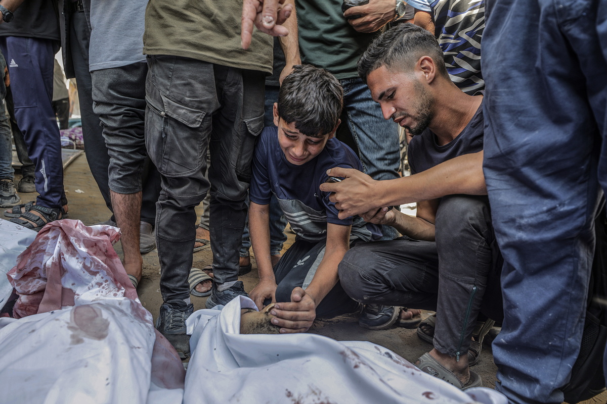 epa12339397 A Palestinian boy mourns near the body of his brother at Al Shifa hospital in Gaza City, Gaza Strip, 31 August 2025. According to the Palestinian Ministry of Health in Gaza, more than 80 Palestinians were killed in Israeli strikes across Gaza on 30 August. More than 63,000 Palestinians have been killed in the Gaza Strip since October 2023, according to the Palestinian Ministry of Health, and about 1,200 Israelis have been killed since the launch of an Israeli military campaign in response to a cross-border attack by Hamas on 07 October 2023. EPA/MOHAMMED SABER