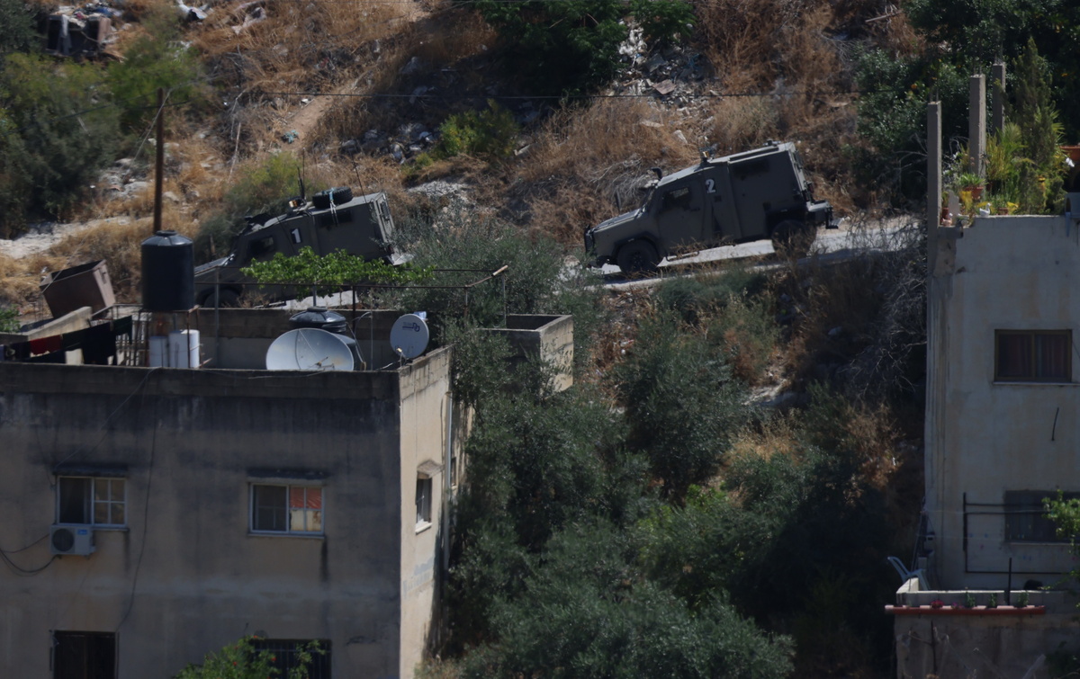 epa12122818 Israeli troops deployed during a military operation in the eastern neighbourhood of the West Bank city of Jenin, 21 May 2025. The Israeli military has been conducting a four-month operation in Jenin and its camp since 21 January. EPA/ALAA BADARNEH