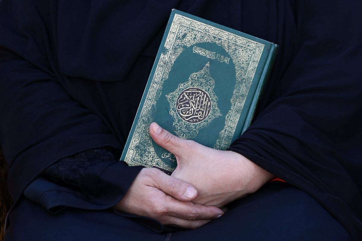 epa10438468 A supporter of Pakistan Markazi Muslim League holds a copy of the Koran during a protest against Sweden, in Karachi, Pakistan, 29 January 2023. Pakistani Prime Minister Shahbaz Sharif, several Arab countries as well as Turkey condemned on 23 January, Islamophobia after Swedish-Danish far-right politician Rasmus Paludan burned a copy of the Koran at a rally in Stockholm on 21 January. EPA/SHAHZAIB AKBER