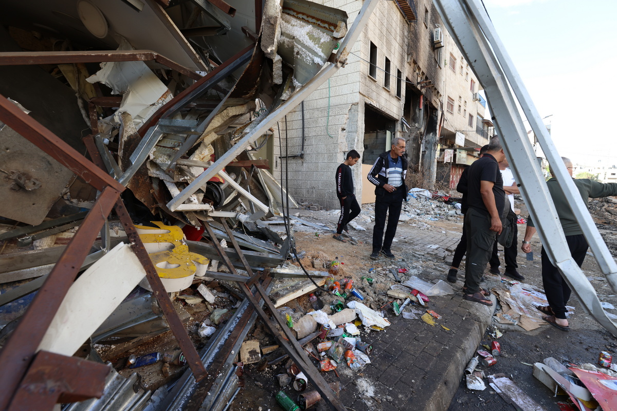 epa10980285 Palestinians inspect the damage after an Israeli raid on Jenin refugee camp in the West Bank city of Jenin , 17 November 2023. According to the Palestinian Health Ministry, three Palestinans were killed and 8 others were injured during clashes with Israeli troops at the camp. EPA/ALAA BADARNEH
