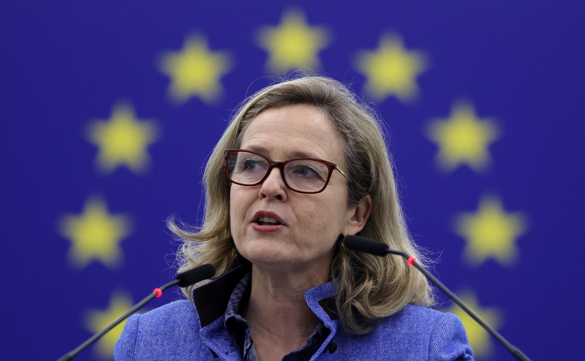 epa11186960 European Investment Bank President Nadia Calvino speaks during a debate on 'Financial activities of the European Investment Bank - annual report 2023' at the European Parliament in Strasbourg, France, 28 February 2024. The European Parliament's plenary session runs from 26 to 29 February 2024. EPA/RONALD WITTEK