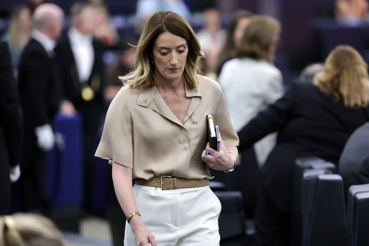 epa11481026 Incumbent European Parliament President and candidate for re-election, Roberta Metsola attends a plenary session of the European Parliament in Strasbourg, France, 16 July 2024. The first session of the new European Parliament opens on July 16, with MEPs due to elect their president for the next two and a half years. EPA/RONALD WITTEK