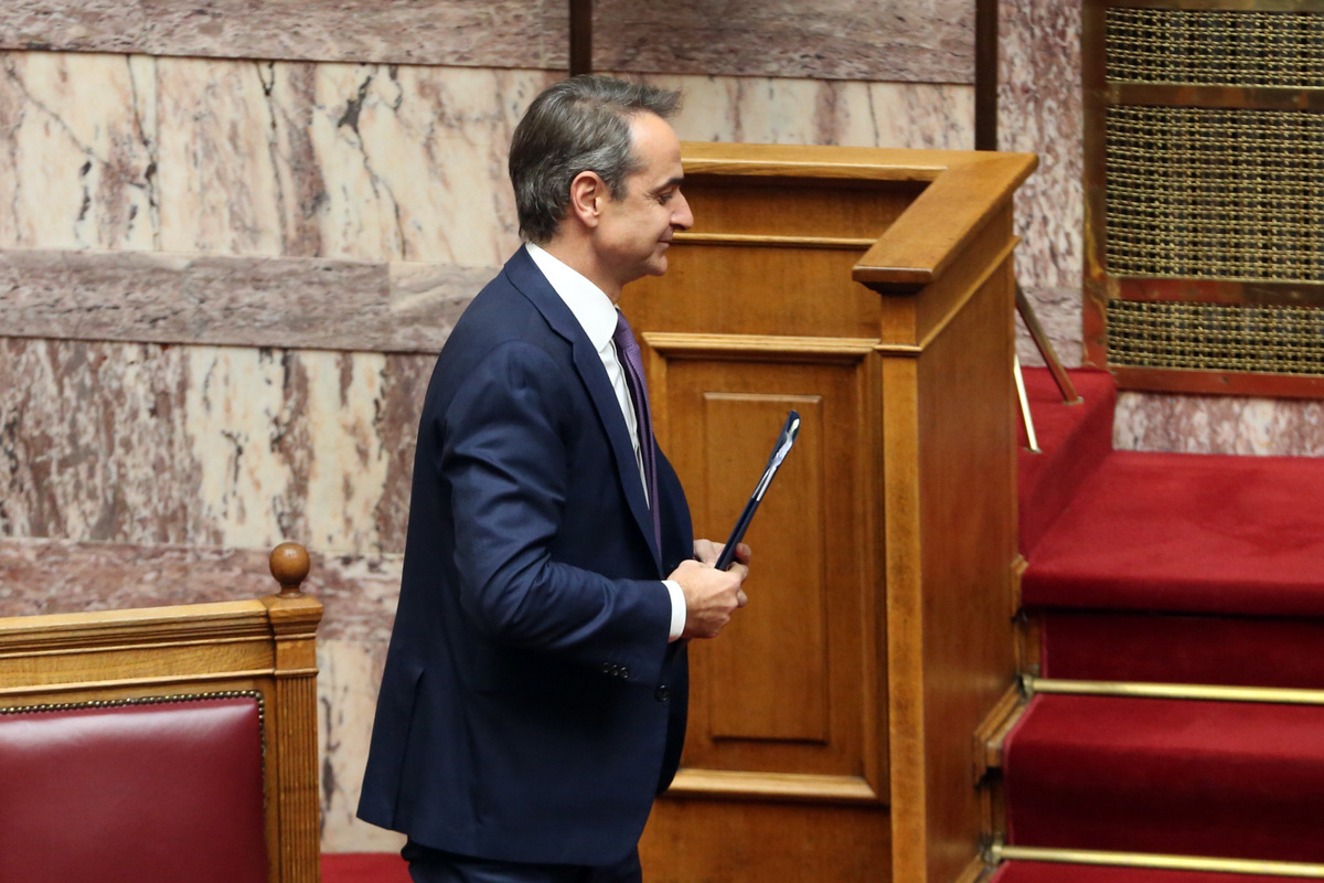 Ο πρωθυπουργός Κυριάκος Μητσοτάκης ανεβαίνει στο βήμα για την ομιλία του στην Ολομέλεια της Βουλής, στη μόνη συζήτηση και ψήφιση επί της αρχής των άρθρων και του συνόλου του σχεδίου νόμου του Υπουργείου Δικαιοσύνης: «Διαδικασία άρσης του απορρήτου των επικοινωνιών, κυβερνοασφάλεια και προστασία προσωπικών δεδομένων πολιτών», Πέμπτη 8 Δεκεμβρίου 2022. ΑΠΕ-ΜΠΕ/ΑΠΕ-ΜΠΕ/Αλέξανδρος Μπελτές
