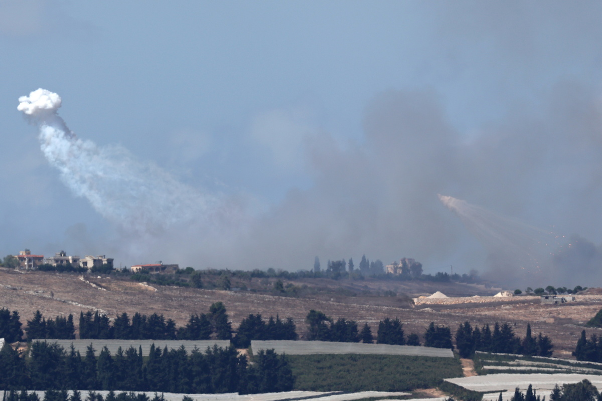 epa11637425 Smoke rises during an Israeli airstrike near Yaroun village in southern Lebanon, as seen from an undisclosed location on the Israeli side of the border, northern Israel, 02 October 2024. The Israeli military reported that additional forces were joining the raids on Hezbollah targets and infrastructure in southern Lebanon that began on 30 September. EPA/ATEF SAFADI