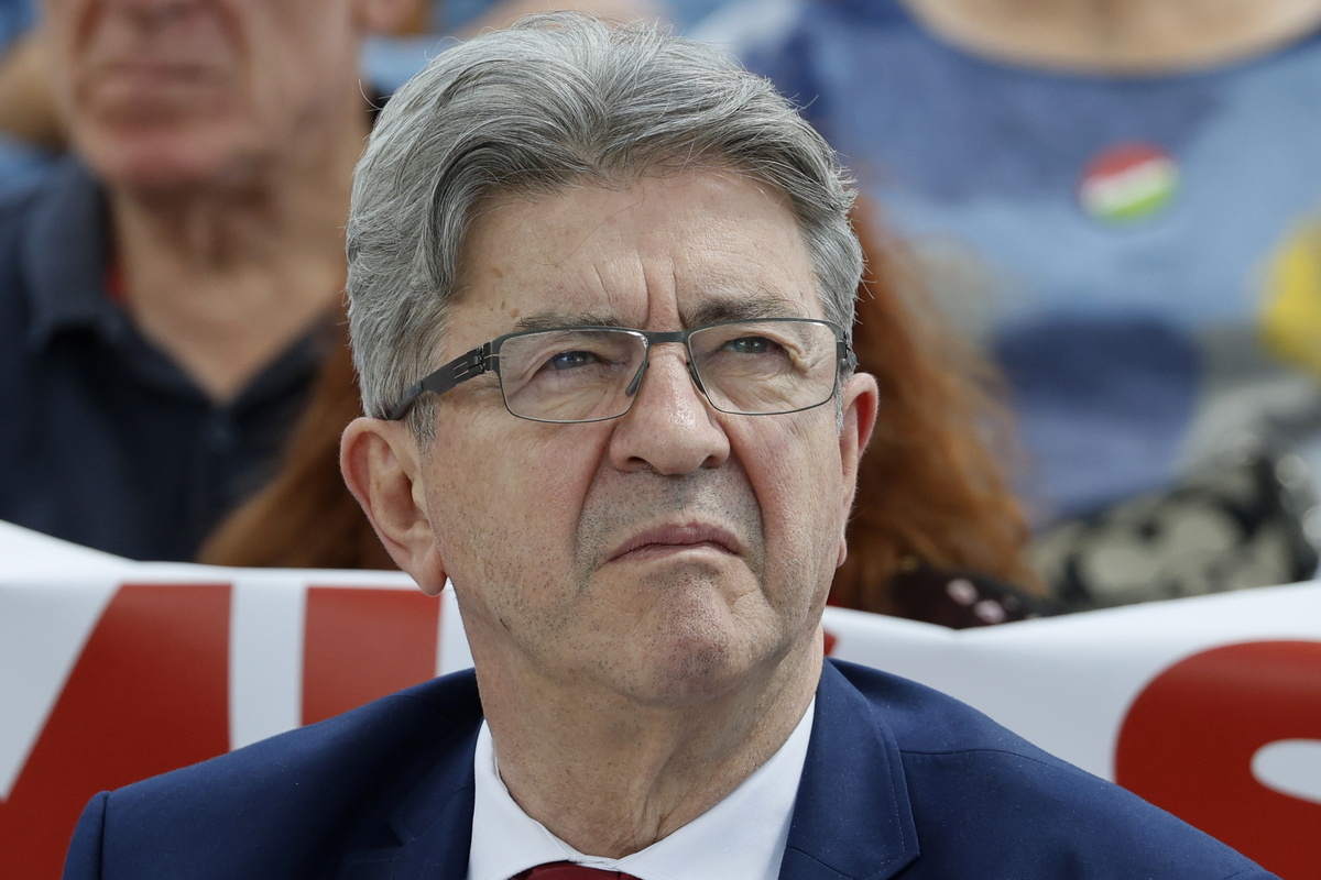 epa11432332 French left-wing La France Insoumise (LFI) party leader Jean-Luc Melenchon attends an electoral meeting of New Popular Front in Montpellier, southern France, 23 June 2024. The French president announced on 09 June the dissolution of the National Assembly and called for new elections on 30 June and 07 July. EPA/Guillaume Horcajuelo
