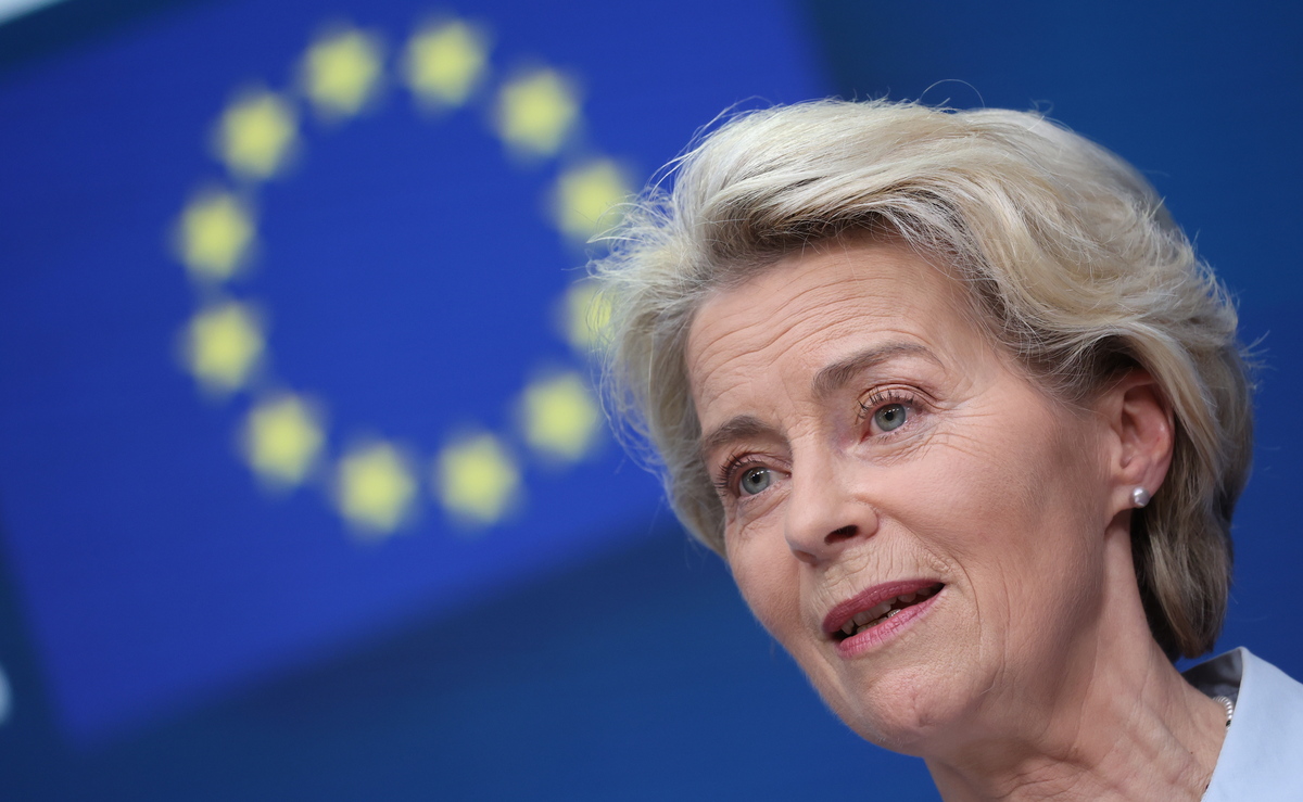 epa10719262 European Commission President Ursula von der Leyen speaks during last press conference on the second day of a European Council in Brussels, Belgium, 30 June 2023. EU leaders are gathering in Brussels for a two-day summit to discuss the latest developments in relation to Russia's invasion of Ukraine and continued EU support for Ukraine as well as the block's economy, security, migration and external relations, among other topics. EPA/OLIVIER HOSLET