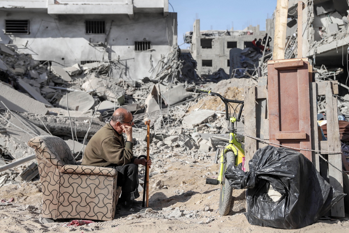epaselect epa11254394 A Palestinian man on salvaged sofa chair as he looks at the damages near Al-Shifa Hospital after the Israeli army withdrew from it following a two-week military operation, in Gaza City, 01 April 2024. An Israeli army spokesperson reported that Israeli forces completed operations at Al-Shifa hospital with about 500 affiliated suspects arrested and 200 eliminated. More than 32,700 Palestinians and over 1,450 Israelis have been killed, according to the Palestinian Health Ministry and the Israel Defense Forces (IDF), since Hamas militants launched an attack against Israel from the Gaza Strip on 07 October 2023, and the Israeli operations in Gaza and the West Bank which followed it. EPA/MOHAMED HAJJAR