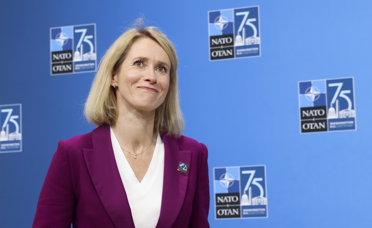 epa11470368 Estonia's Prime Minister Kaja Kallas speaks to members of the news media as he arrives at the NATO Summit at Walter E. Washington Convention Center in Washington, DC, USA, 10 July 2024. The 75th Anniversary NATO Summit is taking place in Washington, DC, from 09 to 11 July 2024. EPA/MICHAEL REYNOLDS