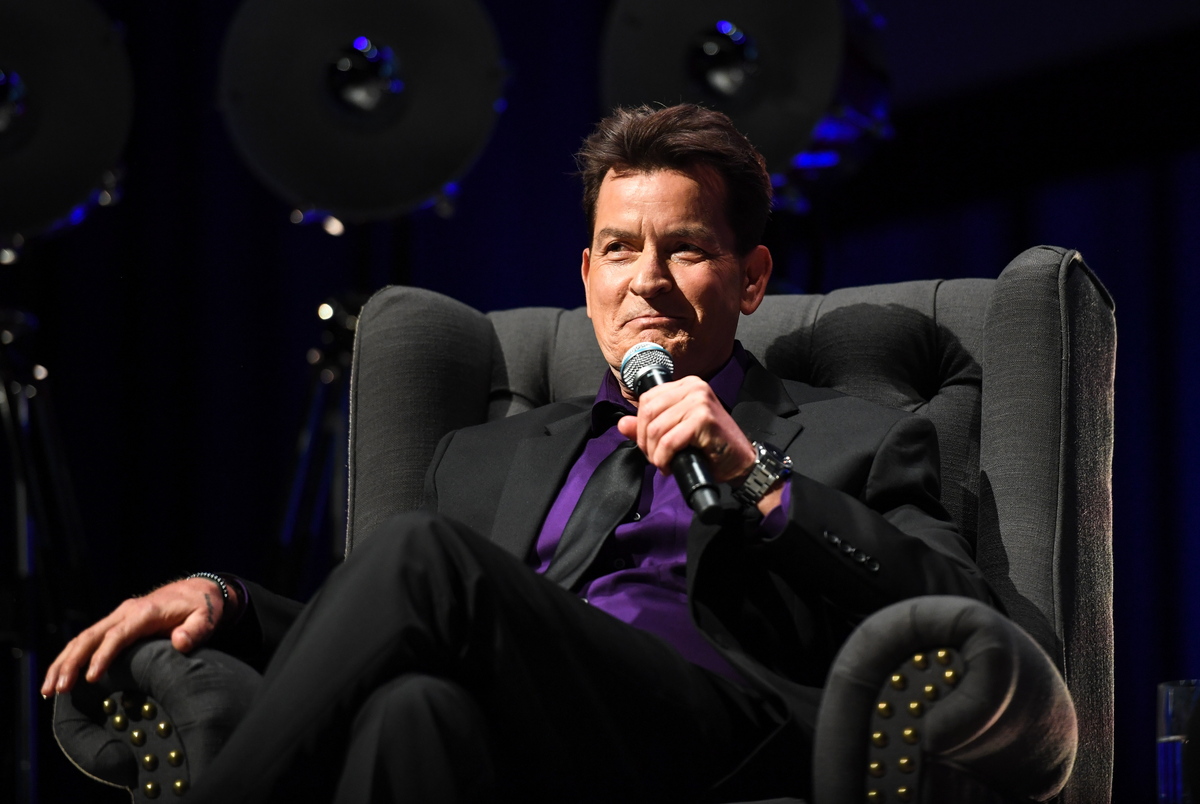 epa07138340 US actor Charlie Sheen is seen on stage during his 'An Evening With Charlie Sheen' live show, hosted by Australian television presenter Richard Wilkins, at Melbourne Convention Centre, in Melbourne, Victoria, Australia, 03 November 2018. Charlie Sheen is in Australia for his first speaking tour. EPA/PENNY STEPHENS AUSTRALIA AND NEW ZEALAND OUT EDITORIAL USE ONLY
