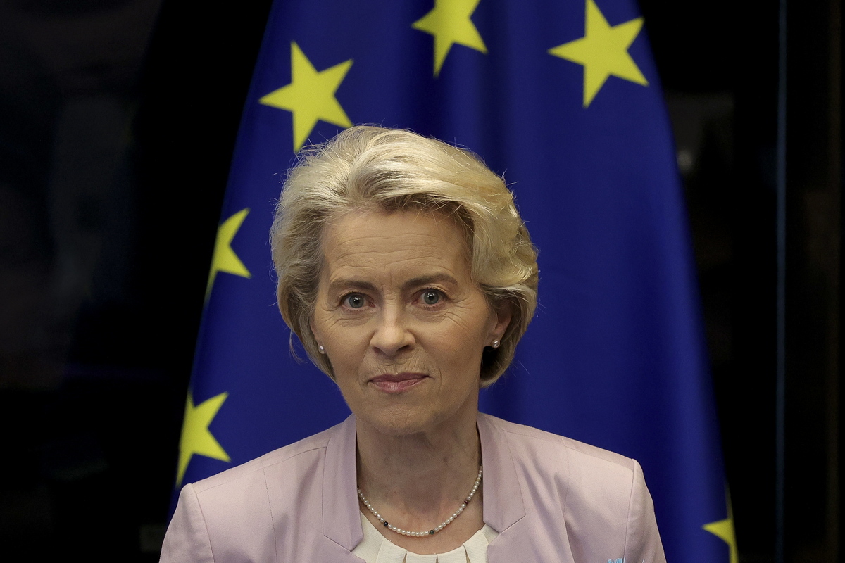 epa10855916 European Commission President Ursula von der Leyen looks on at the start of the European Commission weekly College Meeting at the European Parliament in Strasbourg, France, 12 September 2023. The session runs from 11 till 14 September. EPA/JULIEN WARNAND