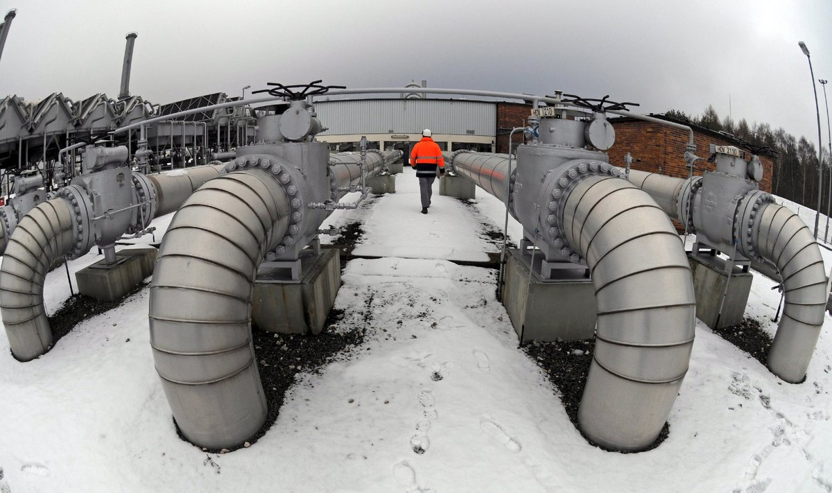 epa01609311 A member of staff of E.ON-Ruhrgas checks the pipelines at a gas compression station in Waidhaus, Germany, 22 January 2009. After the agreement about gas deliveries between Russia and the Ukraine, natural gas continues to be delievered to the pipelines at the compression station in Bavaria. EPA/Armin Weigel