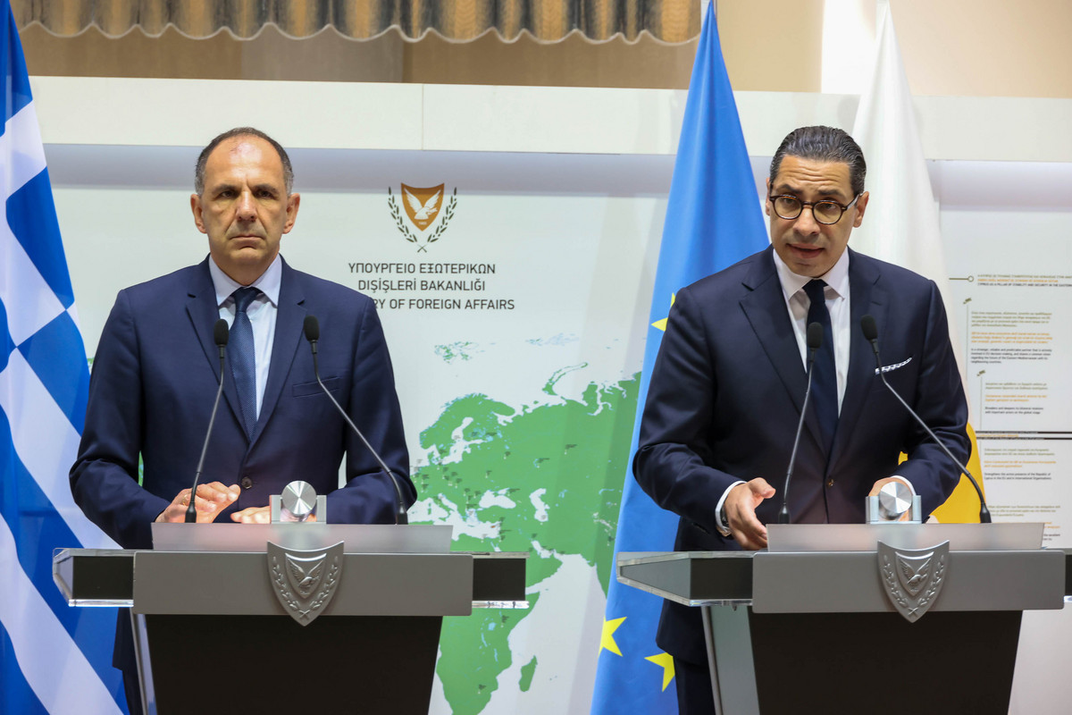 «Η εξεύρεση δίκαιης, βιώσιμης και αμοιβαία αποδεκτής λύσης του Κυπριακού ζητήματος παραμένει κορυφαία εθνική προτεραιότητα της εξωτερικής πολιτικής της Ελλάδος», υπογράμμισε ο υπουργός Εξωτερικών Γιώργος Γεραπετρίτης, σε δηλώσεις του με τον Κύπριο ομόλογό του Κωσταντίνο Κόμπο, στην πρώτη επίσημη επίσκεψή του στο εξωτερικό από τότε που ανέλαβε τα καθήκοντά του ως επικεφαλής της ελληνικής διπλωματίας.