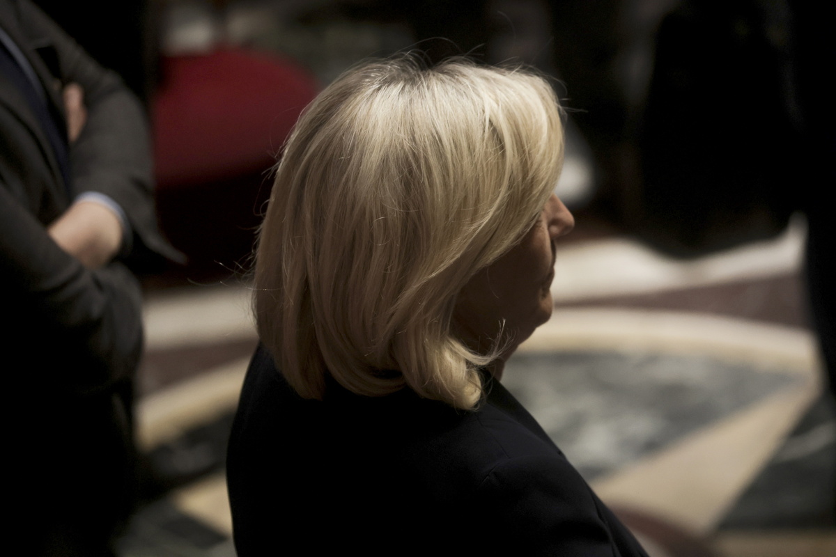 epa12003235 National Rally (RN) parliamentary group leader Marine Le Pen arrives for a session of questions to the government at the French National Assembly, in Paris, France, 01 April 2025. The French National Assembly on 01 April will discuss the guilt-tripping of victims of physical and sexual violence and adding consent to France's legal definition of rape and sexual assault. EPA/Teresa Suarez